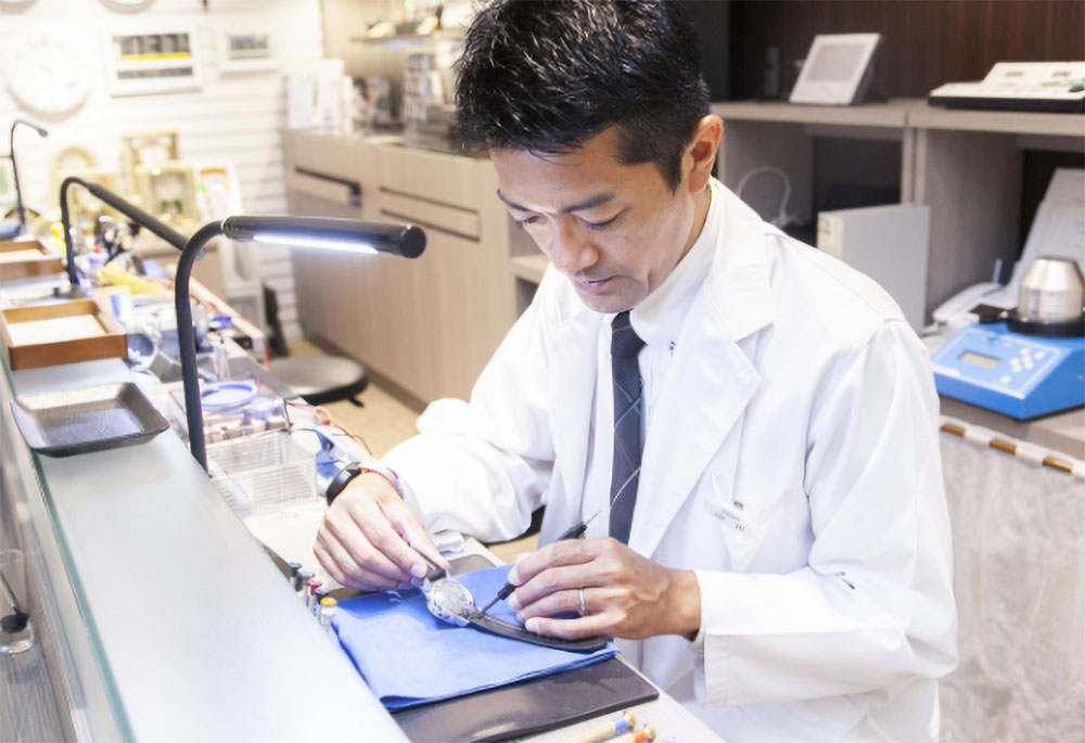 有限会社井手時計店は、福岡天神の百貨店「岩田屋本店時計サロン」にて、国内外25以上の高級腕時計ブランドを取り扱っており、さらに、〈ロジェ・デュブイ〉ブティック、九州初の〈パネライ〉ブティック、九州最大級の〈グランドセイコー〉ブティックを構えます。福岡三越には、2022年4月、九州で2店舗目となる〈パネライ〉ブティックをオープン。また、ホテルオークラ福岡ビルにある「NXONE福岡」では、厳正にチェックされたリシャール・ミルの正規認定中古時計をメインに、委託販売・下取・買取を行っております。